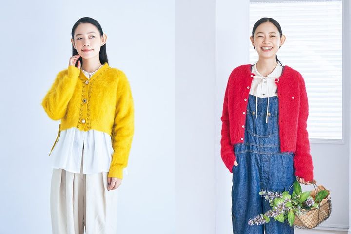 カーディガン¥79,200、パンツ¥53,900/ともにルール ロジェット(ブランドニュース)、ブラウス¥16,500/ビューカリック&フロリック(ビューカリック&フロリック)