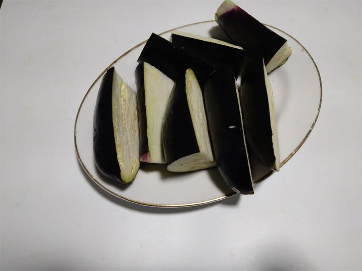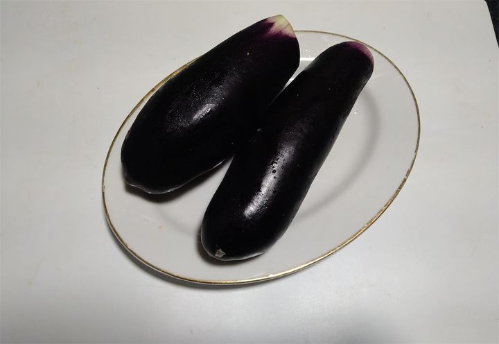 1.なすのヘタを切り落として、縦半分に切り、さらに長さも半分に切る。なすの切り口を上にして、縦に深さ2cmほどの切れ目を入れる。