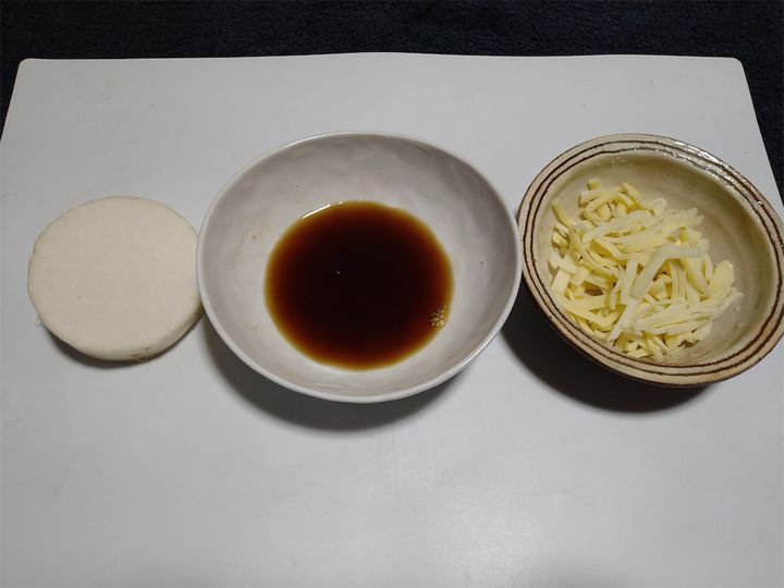 6.大根は皮を剥き、すりおろす。ポン酢しょうゆとよく混ぜ合わせる。