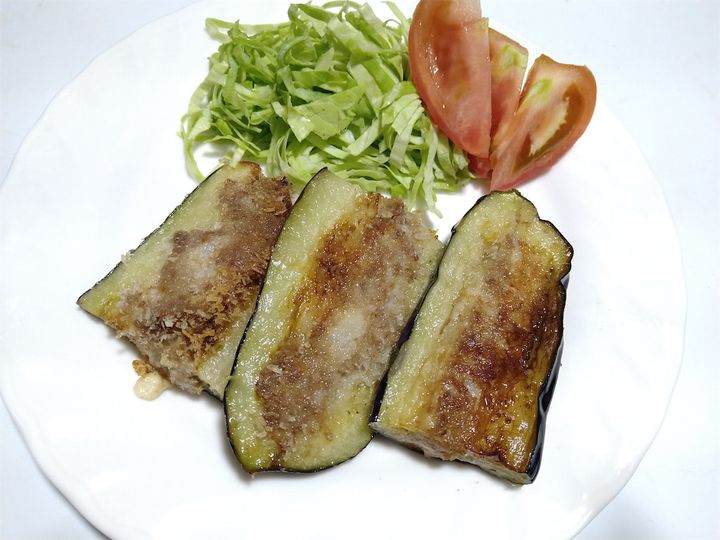3. 【さっぱり揚げ物】お肉は添えるだけ!なすの比率多すぎな「挟み揚げ」作った結果…え、サラダ!?【農家直伝】
