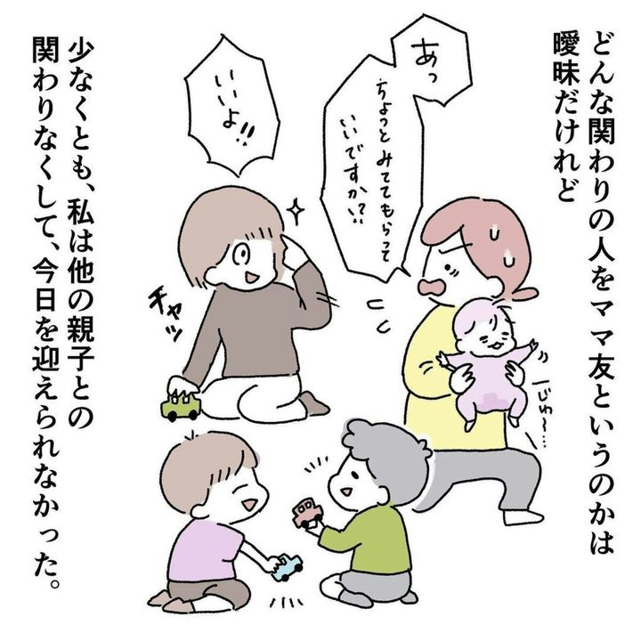 私にとってママ友は、子どもと2人きりの孤立感を束の間(つかのま)でも和らげてくれる存在でした。
