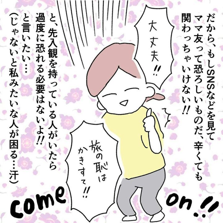 アレコレ心配して、ママ友づくりを躊躇(ちゅうちょ)している方が居たら、気軽に考えて大丈夫だよ、と背中を押したい気持ちで漫画にしてみました。」