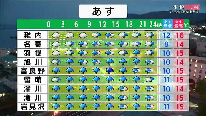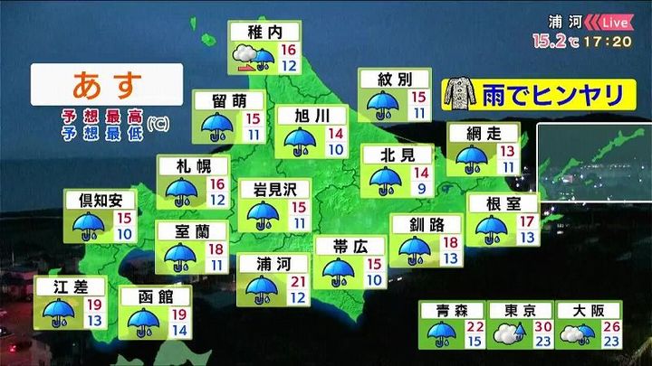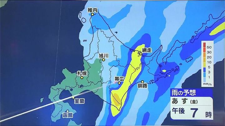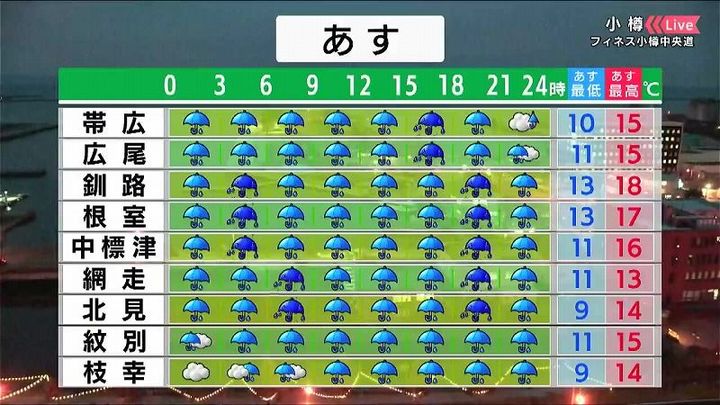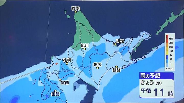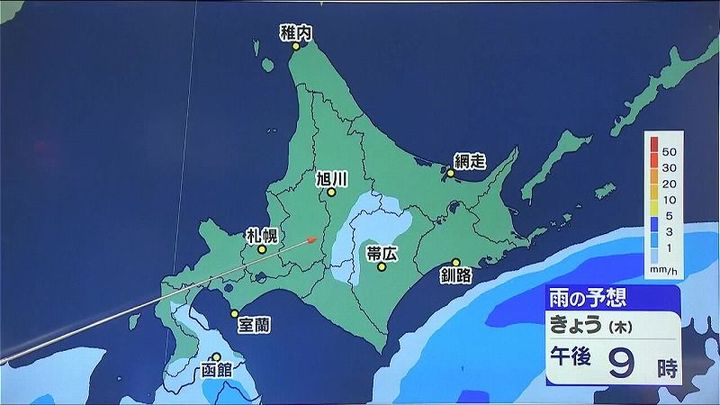3日午後9時には、函館周辺や十勝地方の一部で傘が必要です。