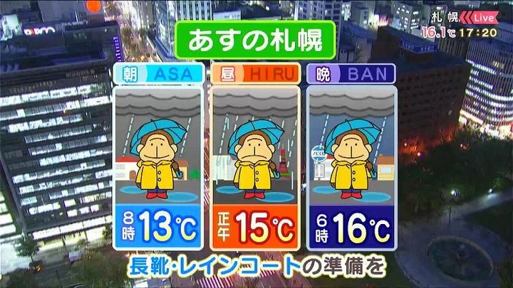 HBCテレビ「今日ドキッ!」の番組内でも独特(?)なイラストを使って天気をお伝えしています。