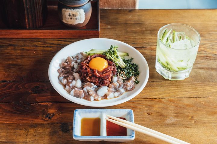 U:つるっとしてて食べやすいんだよね。これをユッケと一緒に食べられるのが、本当に贅沢!