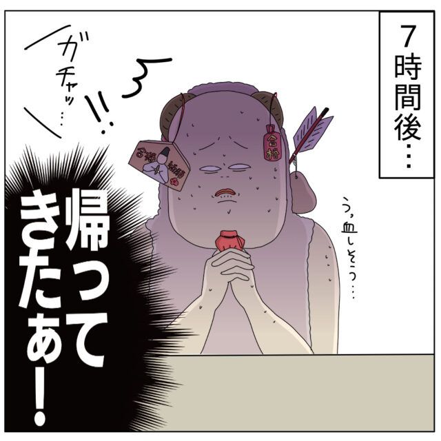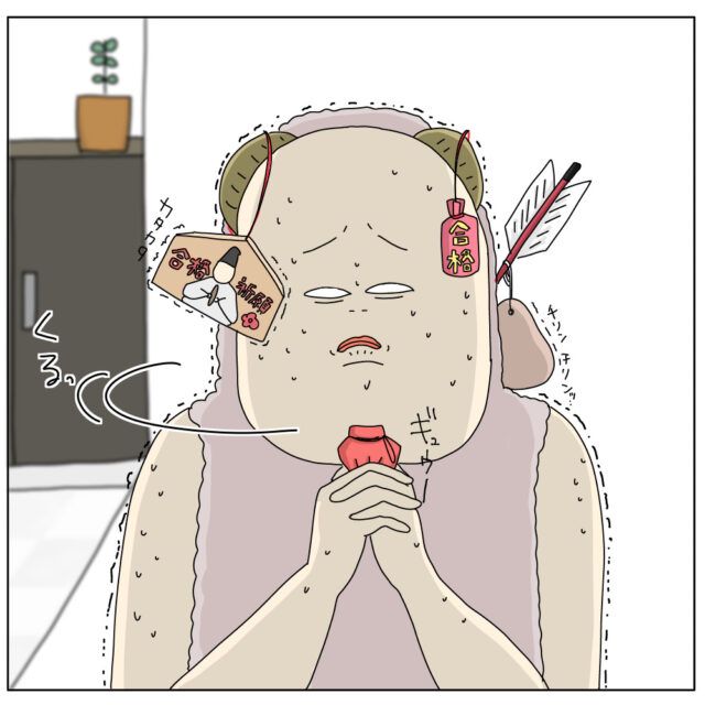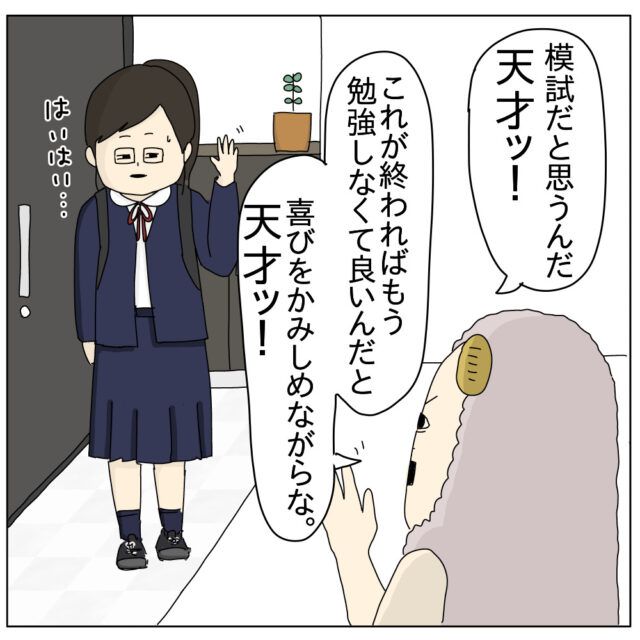 受験日当日。何も手につかない母はお守り握って合格を祈願するのみ。勉強苦手な天然娘の高校受験[12]|チャーの育児漫画