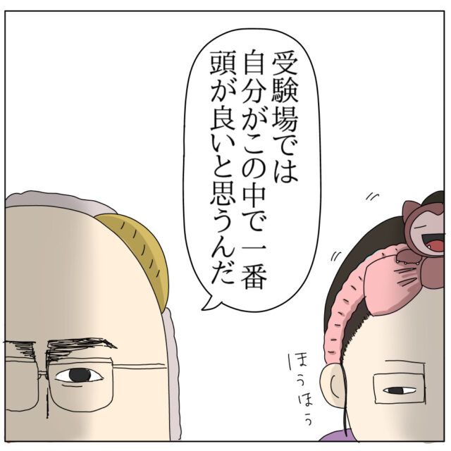 3. 受験日当日。何も手につかない母はお守り握って合格を祈願するのみ。勉強苦手な天然娘の高校受験[12]|チャーの育児漫画