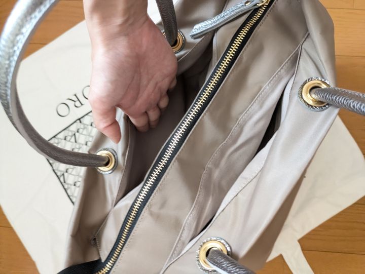 ナイロンバッグですが、裏地は布生地なので丈夫さを感じます。