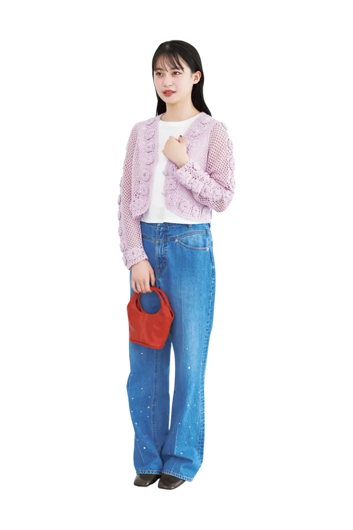 お花編みラベンダーニットでとことん可愛く。カラフルに仕上げて気分アップ♡