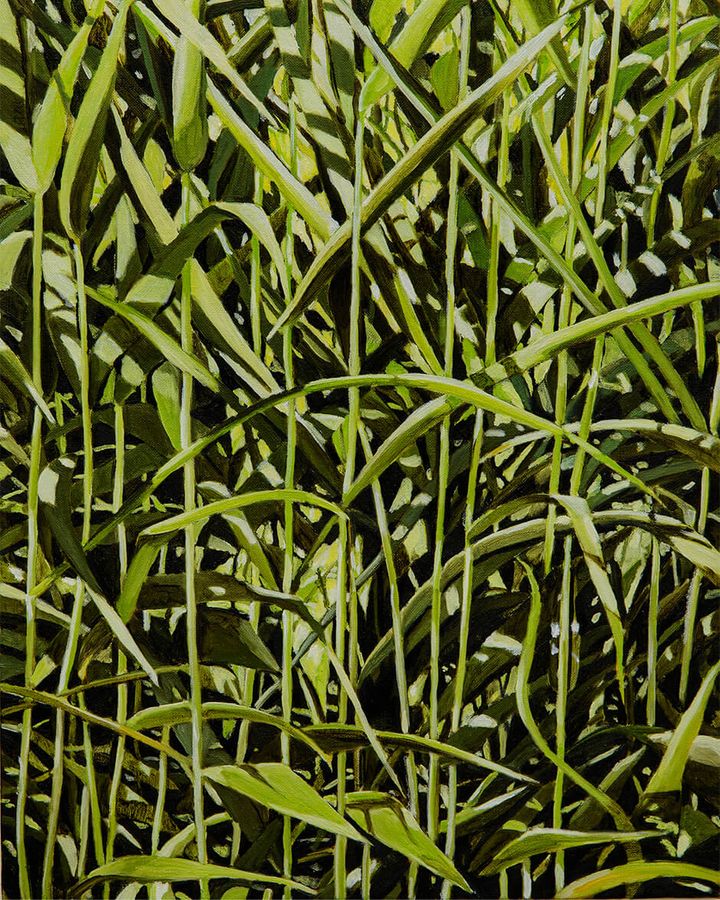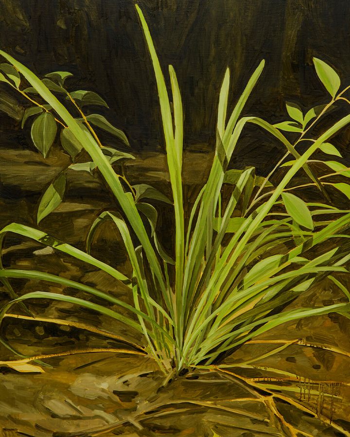 村松は描くことと、井上は草花と向き合う中で、表現の根底にあるものや感覚を確かめながら展示構想を立て、自然の営み、緑青の観る循環が「山是山水是水」という言葉で表現された。