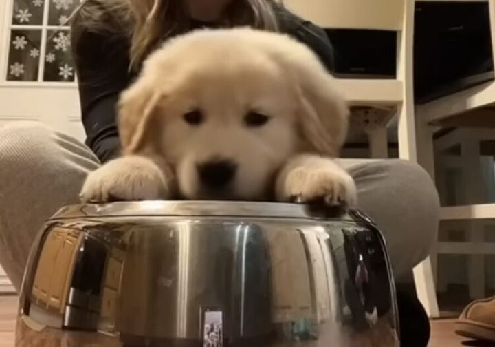 トコトコトン! リズミカルに鍋を叩く子犬が可愛くて、ずっと見ていられる!