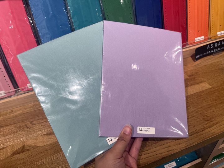 実際に合わせてみると印象がガラリと変わってびっくり! どの色の組み合わせにしようか悩んでしまいます。背表紙のカラーを見て、表紙や裏表紙の色を変える人も多いのだそう。カラー選びに時間がかかる人が多いのも納得です。