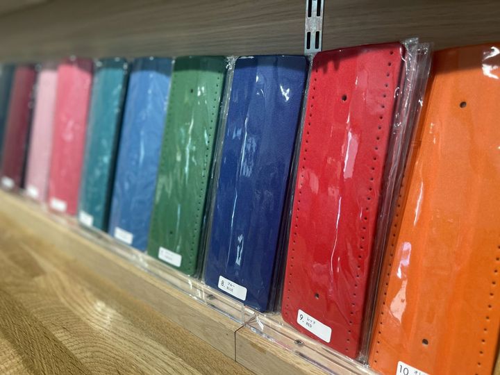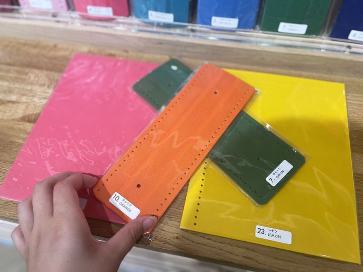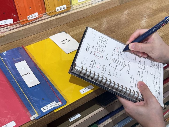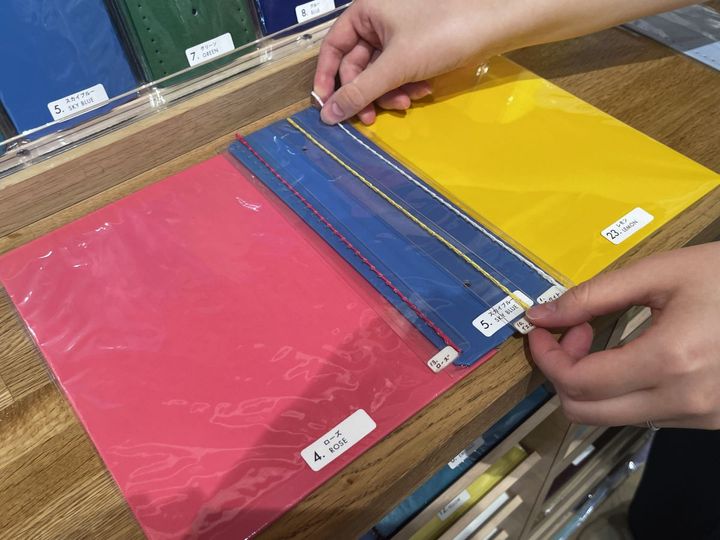 好きな色を選んで作る「オリジナルバインダー」は、「Stitch leaf」の代名詞で人気No.1の商品。スタッフに「オリジナルバインダーを作りたいです」と声掛けしたら、制作スタートです。