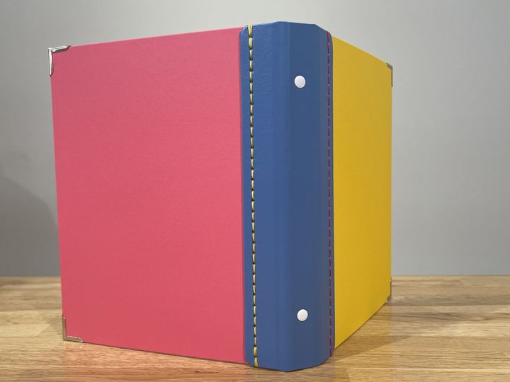 こうして世界にひとつだけのオリジナルバインダーが完成! イエローとピンクの組み合わせがポップでかわいいバインダーに仕上がりました。
