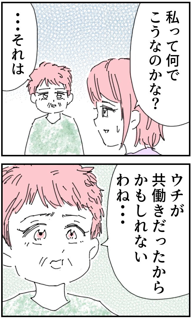 そして「私ってなんでこうなのかな?」お母さんにたずねると「・・それは」と言った後で「ウチが共働きだったからかもしれないわね・・」とお母さんは言いました。
