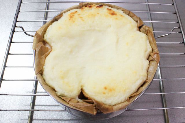 ただし、ケーキ型からクッキングシートがはみ出るので、焦げないようにアルミホイルを被せるのが必須。