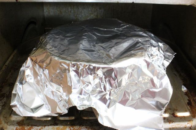 5. アルミホイルを被せて、1000Wのトースターで20~30分焼きます。