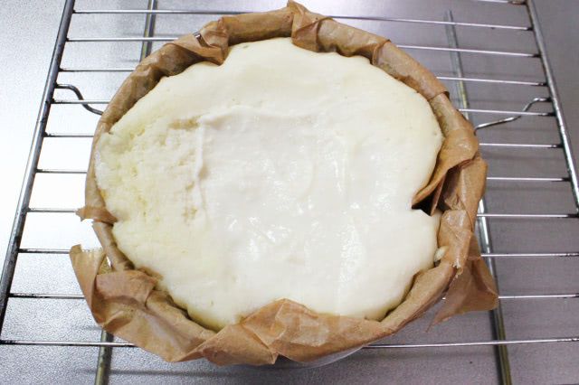 「バスクチーズケーキ」は、スペイン北部の都市、サン・セバスチャンにある「ラ・ヴィーニャ」というバルが発祥。世界的に有名なチーズケーキです。表面を焦がすように焼くのが特徴のひとつですが、今回作る「バスクチーズケーキ」は、表面をアルミホイルで覆って焼くので、焼き色があまり付いていませんでした。