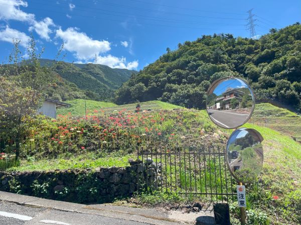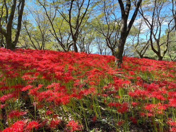 彼岸花群生地がある場所は、一時期、耕作放棄地となって産業廃棄物が捨てられるなど荒れていたそう。そこで、地元の方が40年ほど前に桜の木を植え、その後30年ほど前には彼岸花の球根を植え、今では春は桜、秋は彼岸花がきれいに咲き誇る名所になっています。地元の方の土地を守る思いがあってこその美しい場所だったことを知って私はさらに感動しました。