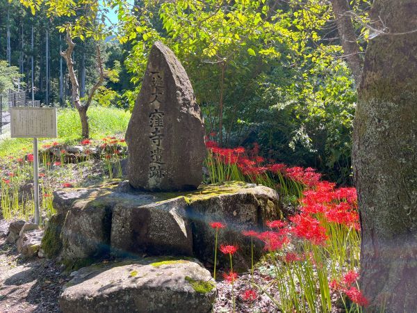 彼岸花群生地がある場所に一遍上人窪寺閑室跡という石碑がありました。調べてみると、一遍上人は松山で生誕した方なんですね。 33歳の一遍上人はこの地にあった窪寺に閑室を構え勤行しており、成道の地として極めて重要な所なのだそう。