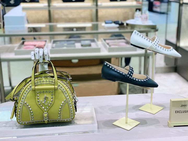 CLASSY.読者の憧れシューズ&バッグブランドJIMMY CHOOは、豊富な品揃えのショップをオープン。イエローのハンドバッグとフラットシューズが限定発売です。