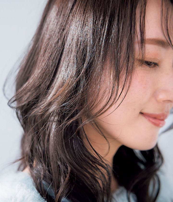 幅1㎝の薄い前髪を目の下の長さでカット。後ろに向かって徐々に長くなるようにレイヤーを。顔周りに柔らかく優しいニュアンスを作ったフェミニンスタイルに。