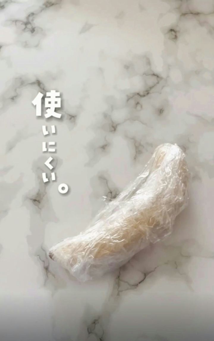 皮をむいたバナナをラップで包みます。