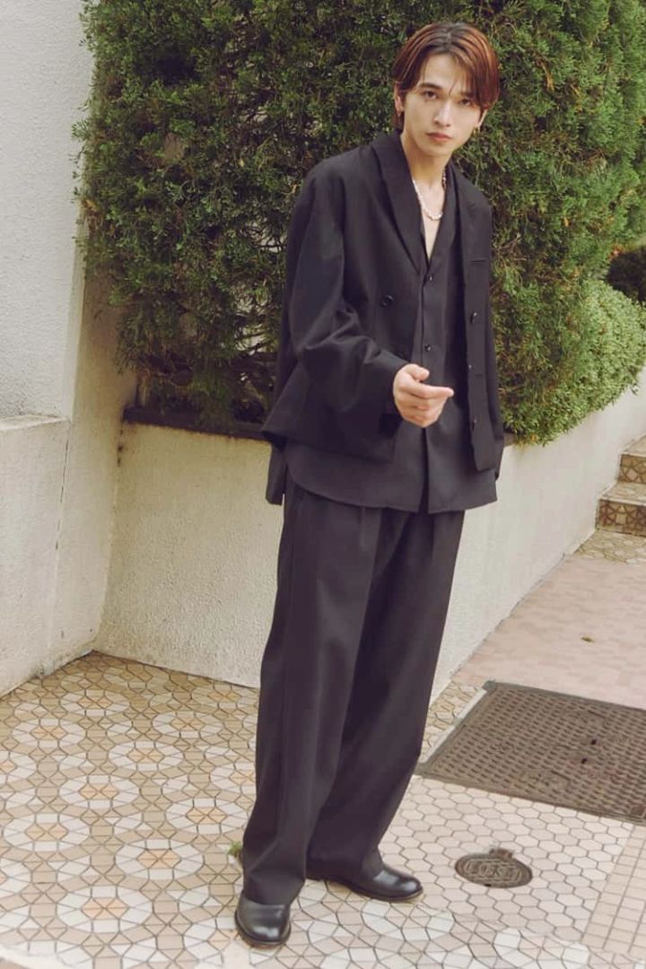 ジャケット 75,900円/ジャンピエール(ADONUST)シャツ、パンツ 各24,200円/アンヌ(バート) ネックレス 24,200円/ハーゴ(ロール) シューズ 14,300円/ビガーシ(RAYAN)
