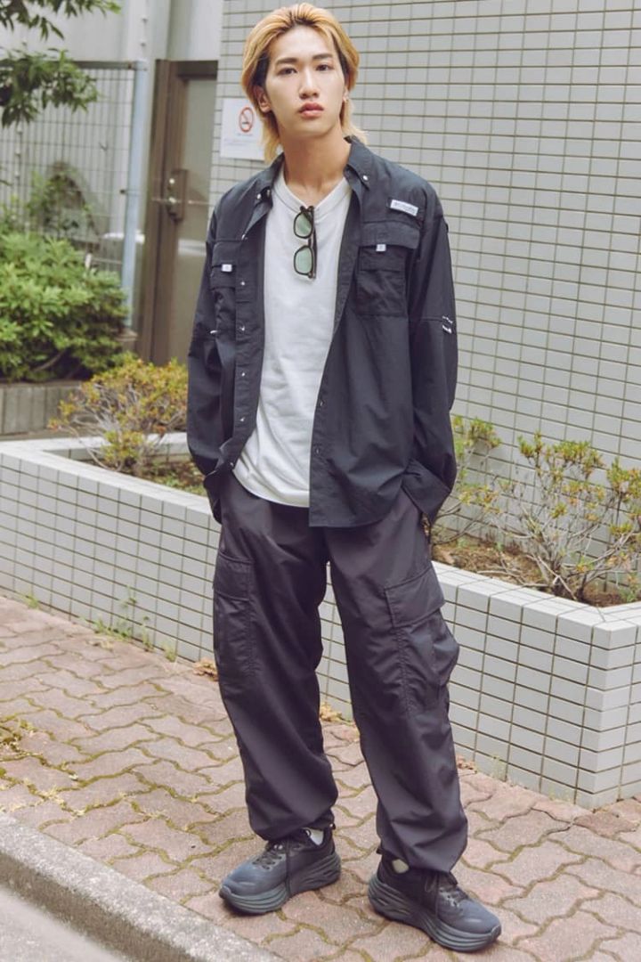 Tシャツ 6,050円/アズ スタンダード(ADONUST MUSEUM)シャツ 2.990円/UNIQLO パンツ 8,910円/カーハート(アス三軒茶屋)サングラス 62,700円/オリバーピープルズ(ルックスオティカジャパン)ネックレス 2,420円/GOLDY シューズ 22,500円/コス(COS 青山店) その他/スタイリスト私物