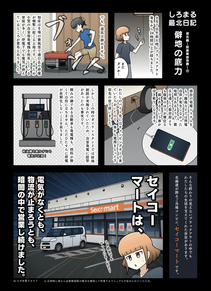 3. 電気がなくても、物流が止まっても…災害時に見えた”僻地の底力”!【白丸あすかの胆振東部地震体験記③】|しろまる最北日記vol,32【漫画】