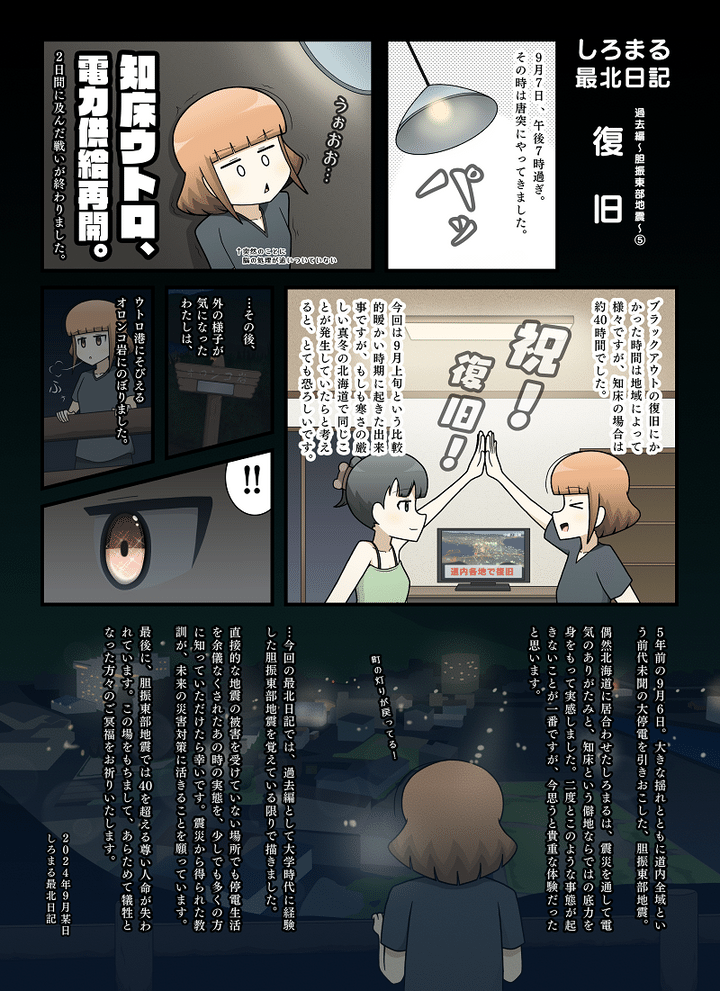 電気がなくても、物流が止まっても…災害時に見えた”僻地の底力”!【白丸あすかの胆振東部地震体験記③】|しろまる最北日記vol,32【漫画】