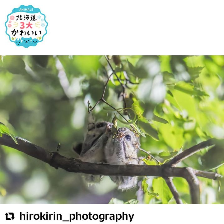 9月11日には、同じ@ hirokirin_photography さんのお写真で、巣穴から外の様子をうかがう、エゾモモンガの赤ちゃんのお写真をご紹介しましたので、その子なのかもしれません。