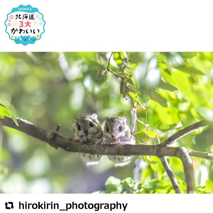 @hirokirin_photography さんによると、ごく最近撮ったお写真だということなので、夏に生まれたばかりの、エゾモモンガのきょうだいなのでしょうね。