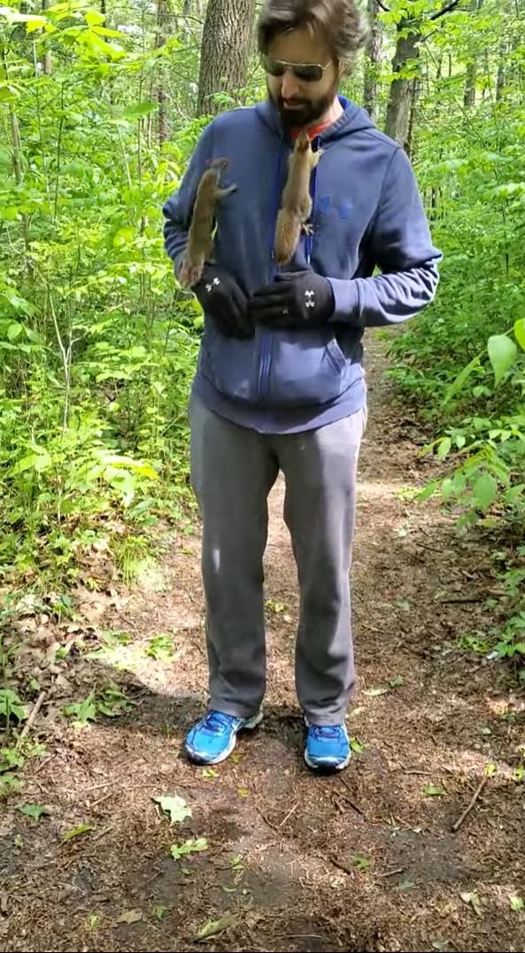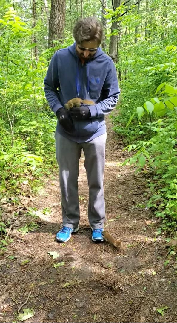 3. ハイキング中にあらわれた2匹の野生のリス!なんといきなり男性に懐いた!?人懐っこすぎるリスたちの驚きの映像