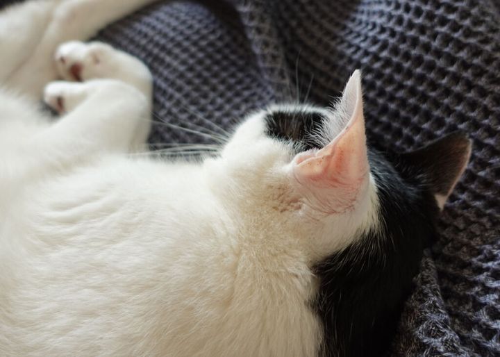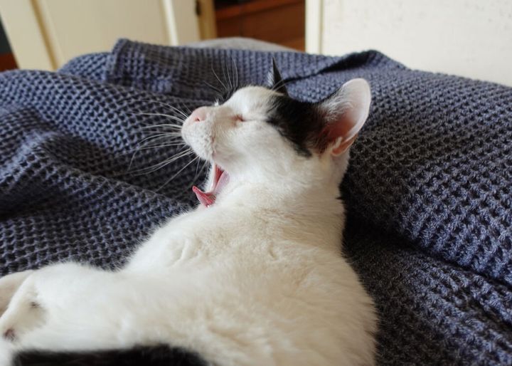 寝ぼけまなこの「にゃあ」。【〈LOISIR〉デザイナー・前田敬子による、保護猫・えいたと暮らす日常。 vol.61】