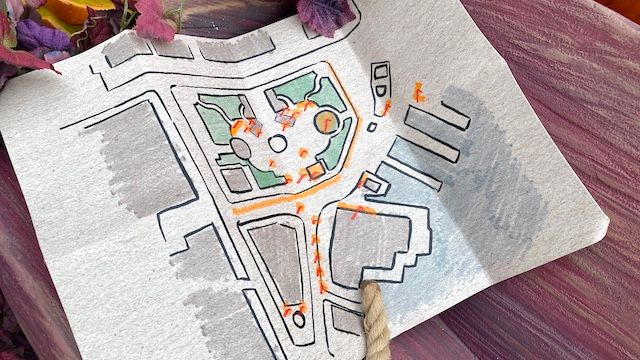 ちなみに、この荷車の一角には地図があり、もしかして宝の地図!? と思ったのですが、どうやらのハロウィンデコレーションスポットが記されているようです。