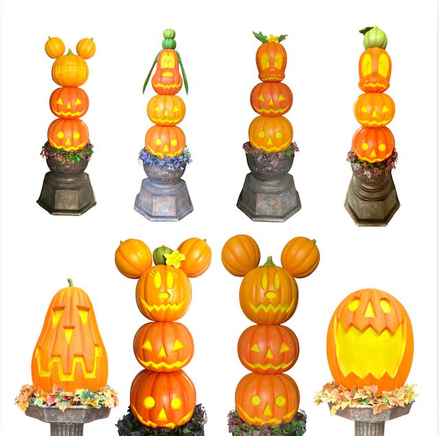 ミラコスタ通りでは、ミッキーやミニー、ドナルドなどお馴染みのキャラクターを中心に、思わず一緒に写真を撮りたくなるカボチャのデコレーションが、柱に沿って1つずつ並んでいます。夜にはもちろん光ります!