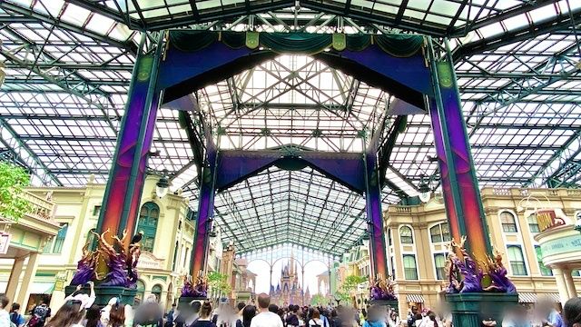 エントランスでは、両サイドの柱にあるディズニーヴィランズたちの特大バナーもお見逃しなく。