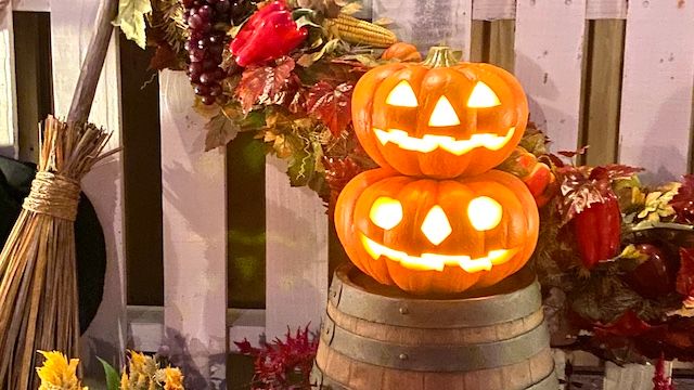 ジョリートロリーの車庫前や花火工場もハロウィーンデコ。