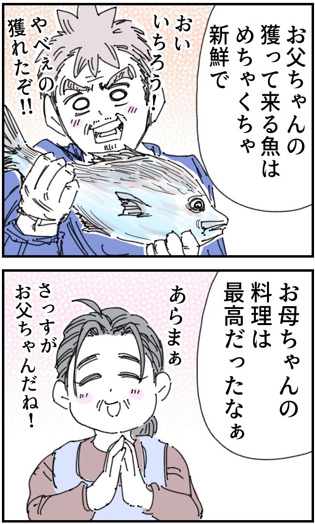 新鮮な魚を獲ってくる漁師のお父さんのこと、料理上手な専業主婦のお母さんのことを話してくれたいちろうさん。
