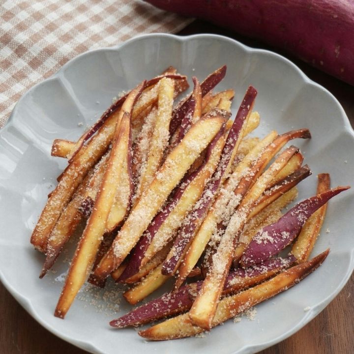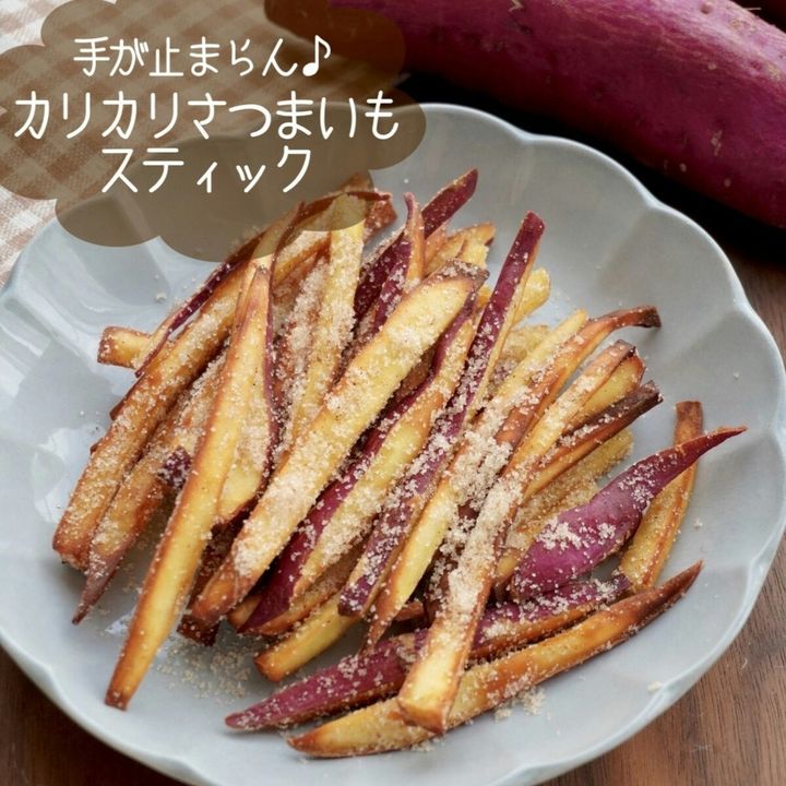 さつまいものカリカリ食感とシナモンシュガーの風味がくせになる、さつまいもスティック。さつまいもを細く切ることで、しっかりとカリカリ食感に仕上がりますよ。