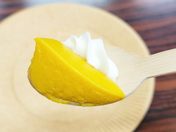 かぼちゃを食べているかのような舌ざわりと優しい甘さが特徴。冷凍のかぼちゃをそのまま粉砕したペーストを使用することで生まれた食感だそうです。