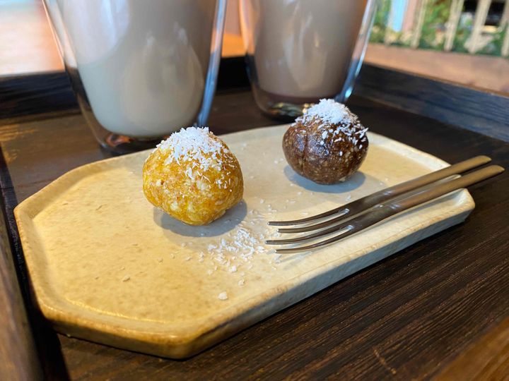 また、チャイのお供に用意しているのは、オーストラリア発祥とされるヘルシースイーツ「ブリスボール」です。ブリスボールはナッツやドライフルーツなどで作られていて、しっかりとした風味と食感がありながらも、お腹にたまらない不思議な食べ応え。mokkadoでは、レーズンとアプリコットのブリスボールをラインナップしています。