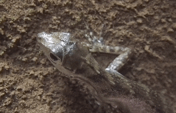 エアポケットはまさに鼻ちょうちんのように膨らんだりしぼんだりしており、アノールトカゲが呼吸していることを示していました。