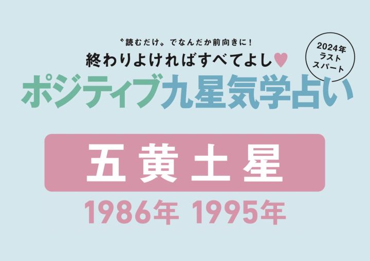 五黄土星にあたる人は、1986年、1995年生まれ。