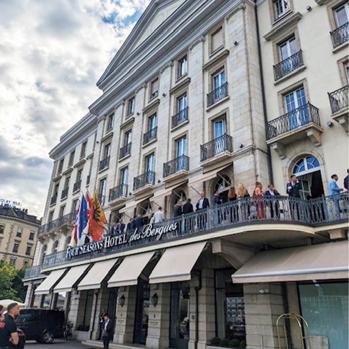 ジュネーブではフォーシーズン・オテル・デ・ベルグに滞在。レマン湖畔、モンブラン橋にも近いベストポジションなこちらのホテルでは、毎回印象的な華やかなフラワーアレレマン湖と旧市街が窓から広がる5つ星ジュネーブ最古の優美なホテルにステインジメントがお出迎えしてくれます。