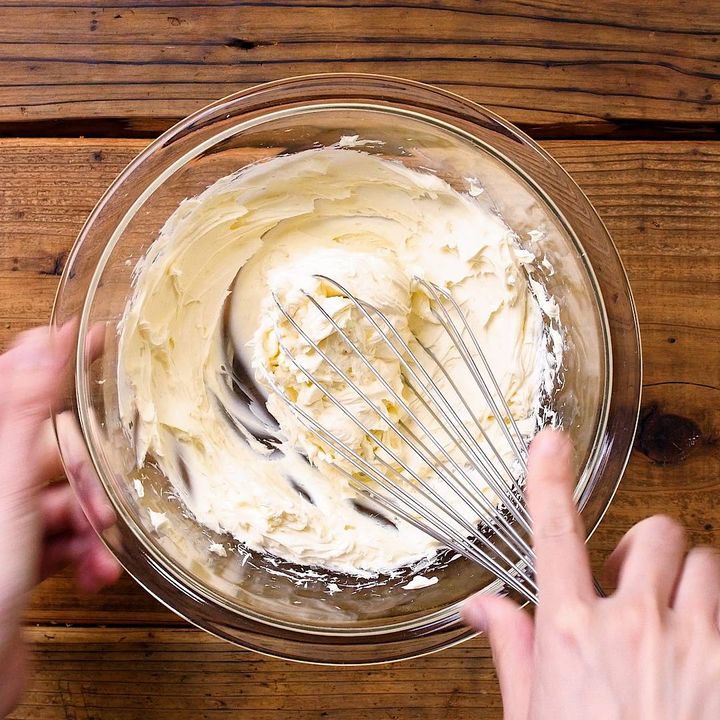 2: 別のボウルにクリームチーズを入れ、なめらかになるまで混ぜます。