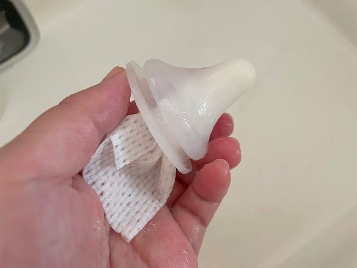 洗いにくい哺乳瓶の乳首部分も、ミラクルキッチンワイプスは薄くて細かい場所も洗えるので、乳首の先にも入ってきれいに洗えます。