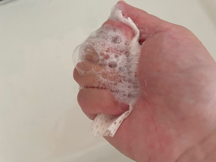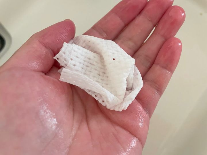 ただ、スポンジに比べると薄いので、汚れをゴシゴシ洗うのには向いていなさそうですが、少しの汚れなら問題なく洗えますよ♪