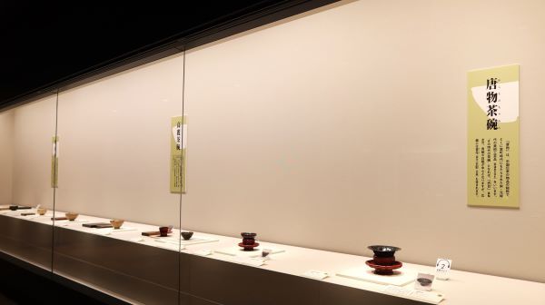 ギャラリー1の展示室では、岩﨑彌之助、 小彌太父子が蒐集した中国製の唐物(からもの)、天目茶碗、高麗茶碗、樂茶碗の名碗が並びます。